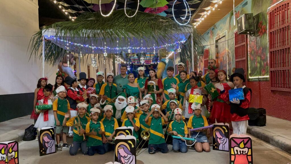 La celebración estuvo acompañada por presentaciones artísticas locales que enriquecieron la noche con talento y tradición. La Escuela de Música Ciudad Dorada ofreció un repertorio especial para la ocasión, interpretando piezas que evocaron la Navidad y que, con sonidos de cuerdas, vientos y percusión, llenaron el parque de emoción y nostalgia. Sus estudiantes, formados en procesos musicales que buscan fortalecer la cultura local, demostraron una vez más el valor del arte como espacio de encuentro y transformación social.